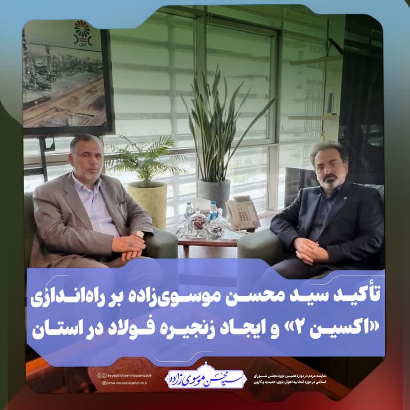 تأکید سید محسن موسویزاده بر راهاندازی «اکسین ۲» و ایجاد زنجیره فولاد برای کاهش بیکاری در استان
