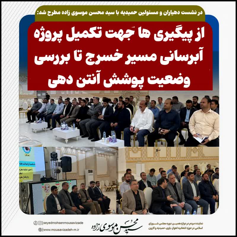 در نشست دهیاران و مسئولان حمیدیه به مناسبت هفته دولت با حضور سید محسن موسوی‌زاده، مسائل کلیدی شهرستان از جمله آب شرب، اشتغال، درمان، آنتن‌دهی تلفن همراه و پروژه‌های عمرانی مورد بررسی قرار گرفت.