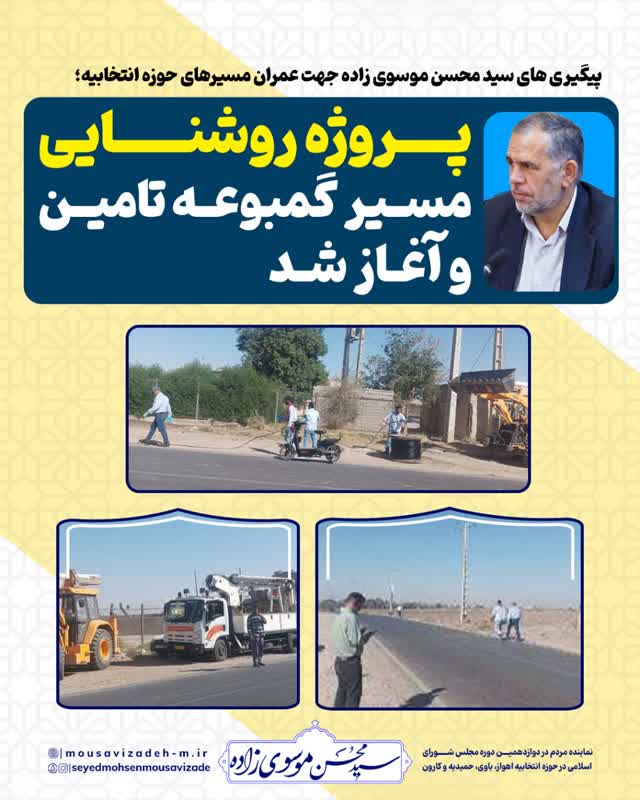 پیگیری های سید محسن موسوی زاده جهت عمران مسیرهای حوزه انتخابیه/ پروژه روشنایی مسیر گمبوعه تامین و آغاز شد